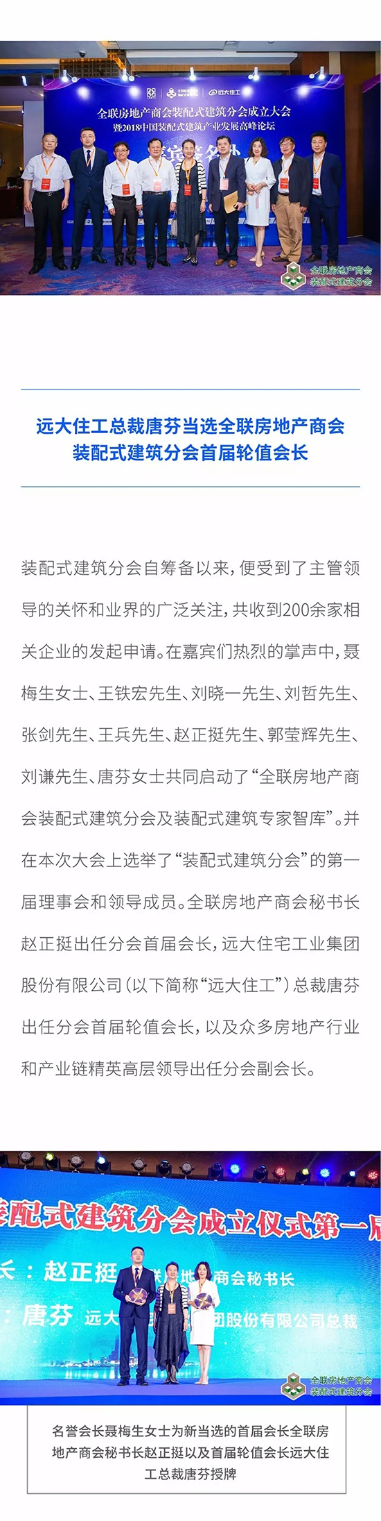 全聯(lián)房地產(chǎn)商會(huì)裝配式建筑分會(huì)成立大會(huì)盛大召開 遠(yuǎn)大住工總裁唐芬當(dāng)選首屆輪值會(huì)長(zhǎng)