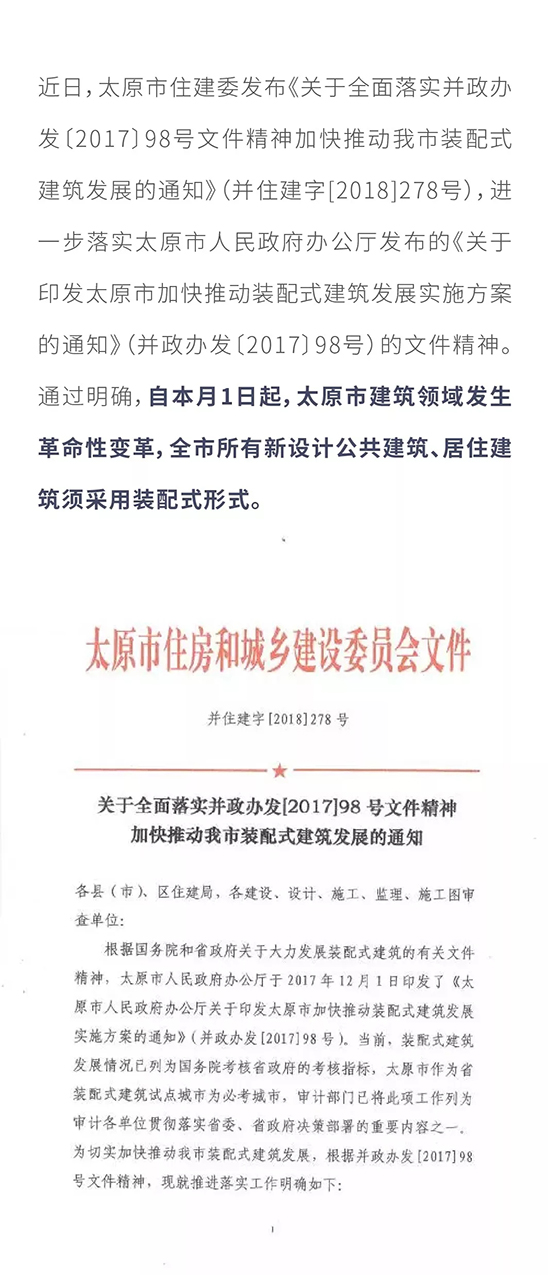 本月1日起,太原市所有新設(shè)計(jì)公共建筑、居住建筑須采用裝配式建筑